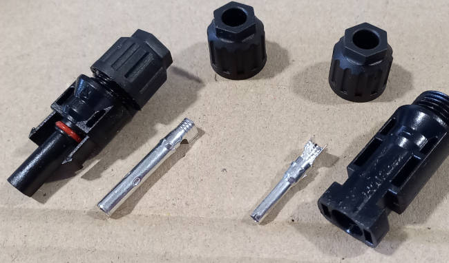 Voici les deux types de connecteurs MC4 sortis de leur emballage:
